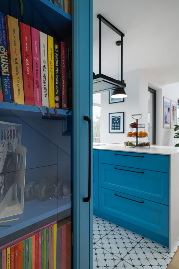Mocny kolor często budzi obawy, że forma przysłoni funkcję. W tej realizacji jest odwrotnie.